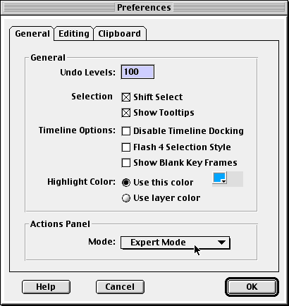 Pour configurer Flash 5 afin qu'il soit tout le temps en mode Expert,
